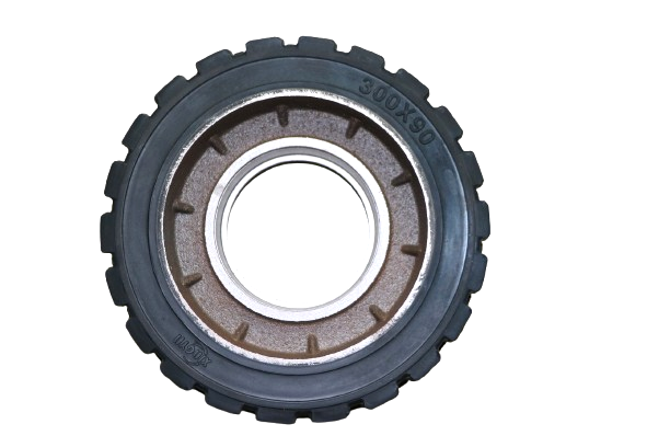 300×90mm重型橡胶轮专为电动叉车及各类高负载物流搬运设备设计,具备卓越的承载能力和耐用性。产品采用高强度铝合金或钢制轮芯与高性能工业橡胶包覆而成,确保轮子在复杂工况下依然稳定可靠,广泛应用于仓储、工厂、物流中心等高强度作业环境。